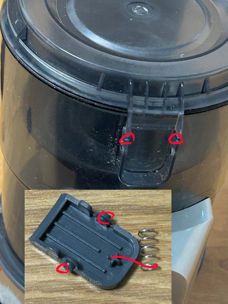청소기버튼 고장 ㅠㅠ 저게 떨어졌는데 눌르면 딱 뚜껑이열리는거거든요 어케고쳐야할까요ㅜㅜ??????....